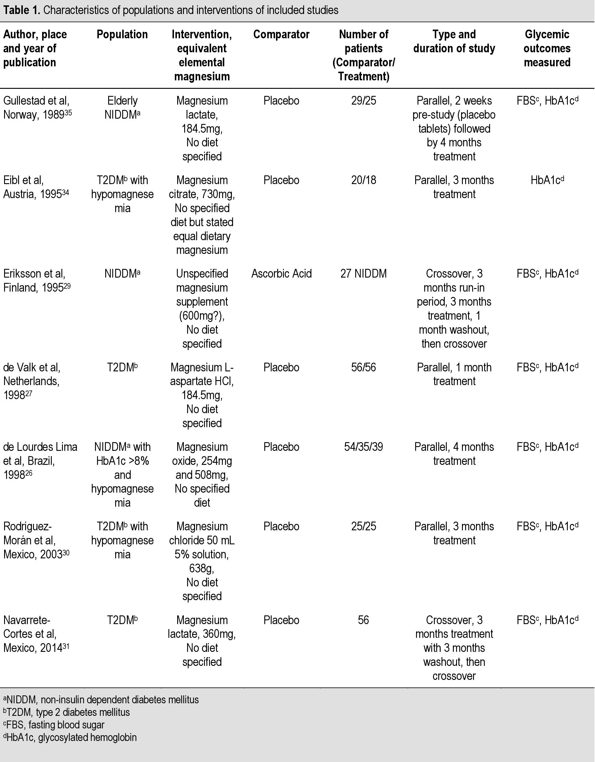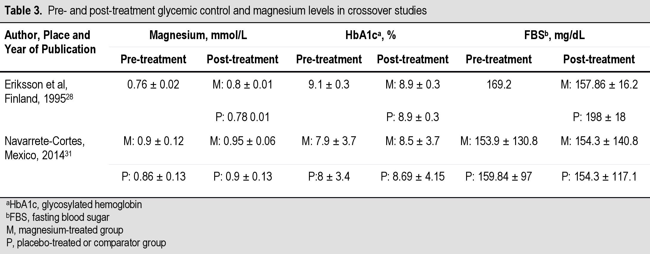 Table 3. Pre- and post-treatment glycemic control and magnesium levels in crossover studies