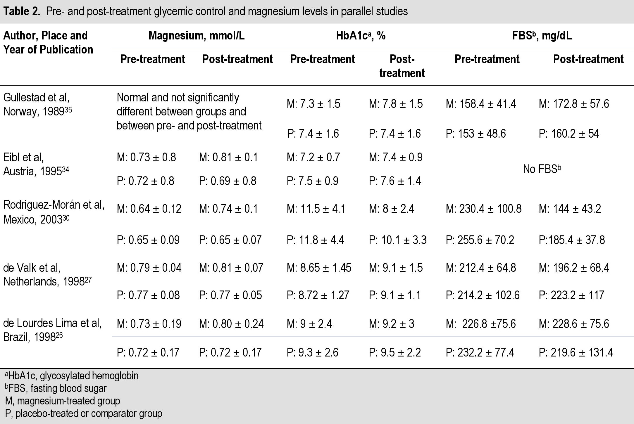 Table 2. Pre- and post-treatment glycemic control and magnesium levels in parallel studies