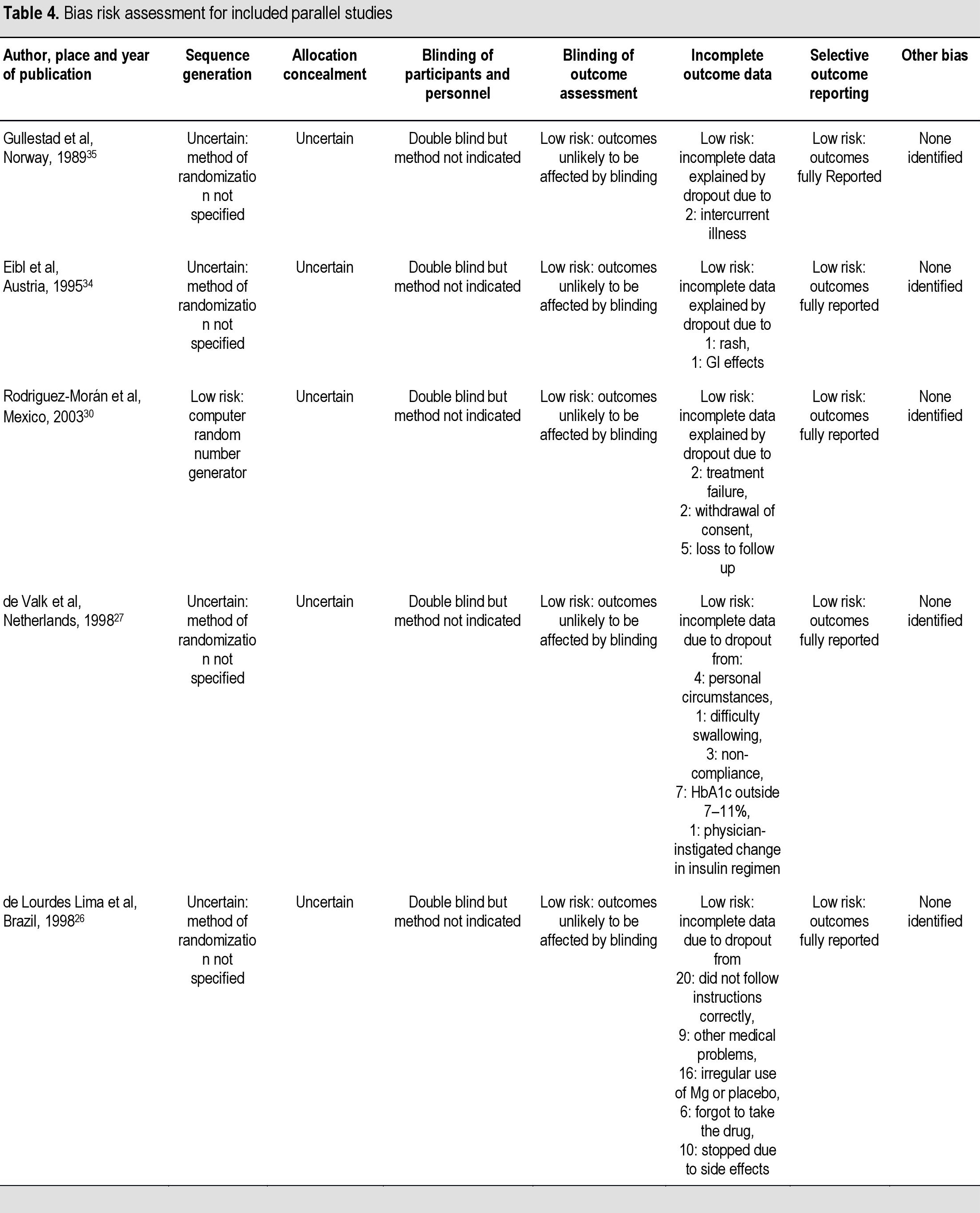 Table 4. Bias risk assessment for included parallel studies