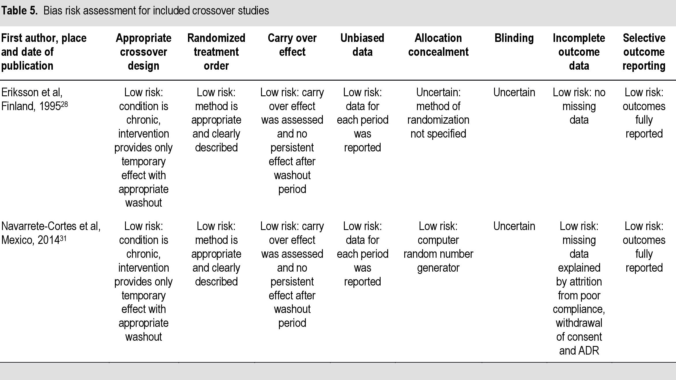 Table 5. Bias risk assessment for included crossover studies