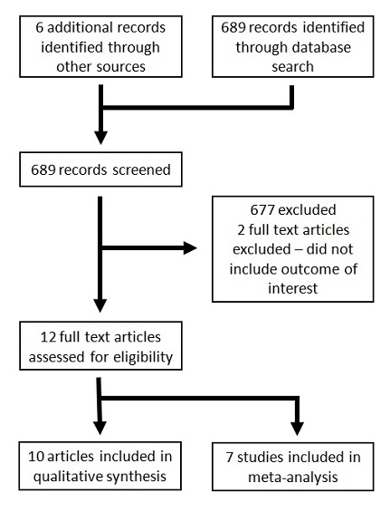 Following electronic and manual searches, a total of 12 full text articles were identified to have met the inclusion criteria. However, 2 of these did not include the outcome of interest. Three more studies were excluded from the quantitative analysis because of the use of different measures of glycemic control/utilization, but were included in the qualitative analysis. Subjects included in the studies were of similar age and sex ratio, and were treated with diet and/or oral hypoglycemic agents. The work flow for screening and assessment of journals are outlined in Figure 1.