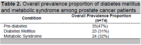 Table 2. Overall prevalence proportion of diabetes mellitus and metabolic syndrome among prostate cancer patients