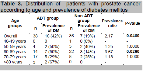 Table 3. Distribution of patients with prostate cancer according to age and prevalence of diabetes mellitus