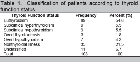 Table 1. Classification of patients according to thyroid function status