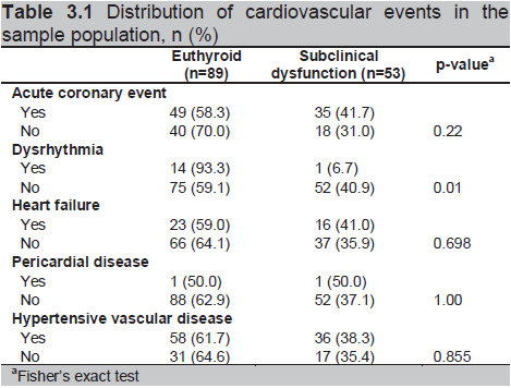 Table 3.1 Distribution of cardiovascular events in the sample population, n (%)