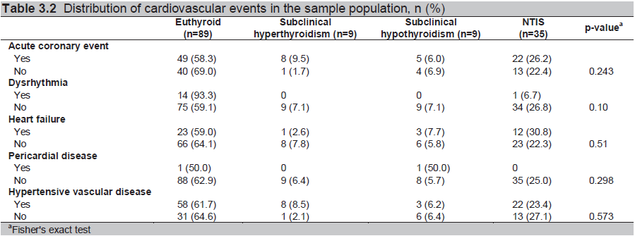 Table 3.2 Distribution of cardiovascular events in the sample population, n (%)