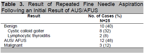 Table 3. Result of Repeated Fine Needle Aspiration Following an Initial Result of AUS/AFUS