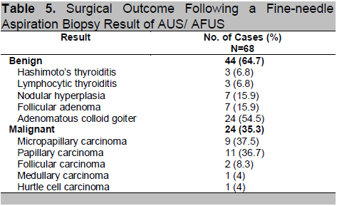 Table 5. Surgical Outcome Following a Fine-needle Aspiration Biopsy Result of AUS/ AFUS