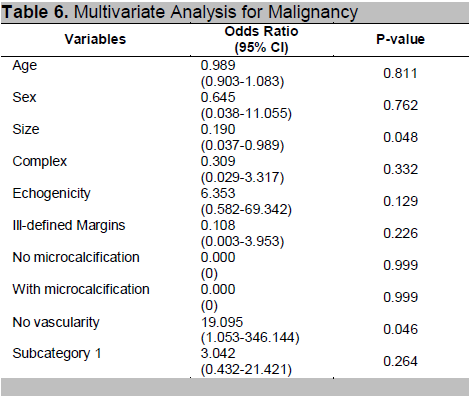 Table 6. Multivariate Analysis for Malignancy