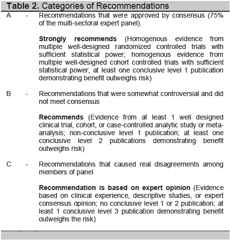 Since then new literature on the management of thyroid nodules and thyroid cancer has proliferated. Contemporary issues regarding the applicability of some of the recommendations have also been raised. Hence, in 2011 the interdisciplinary panel of experts responsible for the UP-PGH CPG for thyroid nodules and well-differentiated thyroid cancer reconvened with three objectives in mind: 1) Present the experiences and collected data using the current recommendations; 2) Review the appropriateness of the recommendations given the current institutional milieu; and 3) Update the CPG as deemed necessary. The same methodology in reviewing evidence and arriving at a consensus has been carried out.2 Grading of the levels of evidence and strength of recommendation are similar (see Tables 1 and 2). Following monthly discussions from September 2011 to January 2012, the UP-PGH Working Group on Thyroid Cancer has completed this revised CPG.
