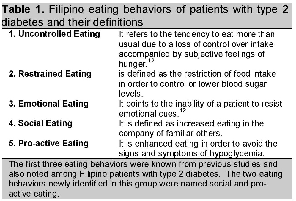 Click here to download Table 1Table 1. Filipino eating behaviors of patients with type 2 diabetes and their definitions
