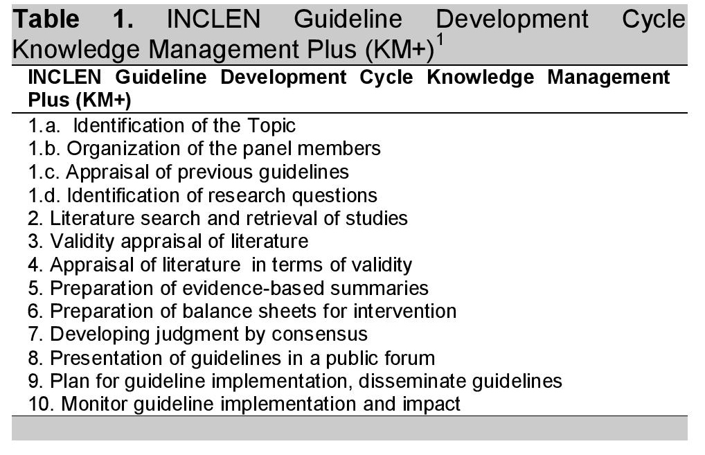 Click here to download Table 1Table 1. INCLEN Guideline Development Cycle Knowledge Management Plus (KM+)1