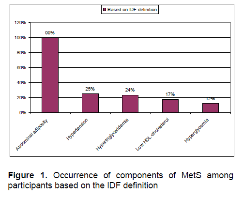 Figure 1. Occurrence of components of MetS among participants based on the IDF definition
