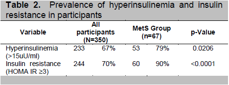 Table 2. Prevalence of hyperinsulinemia and insulin resistance in participants