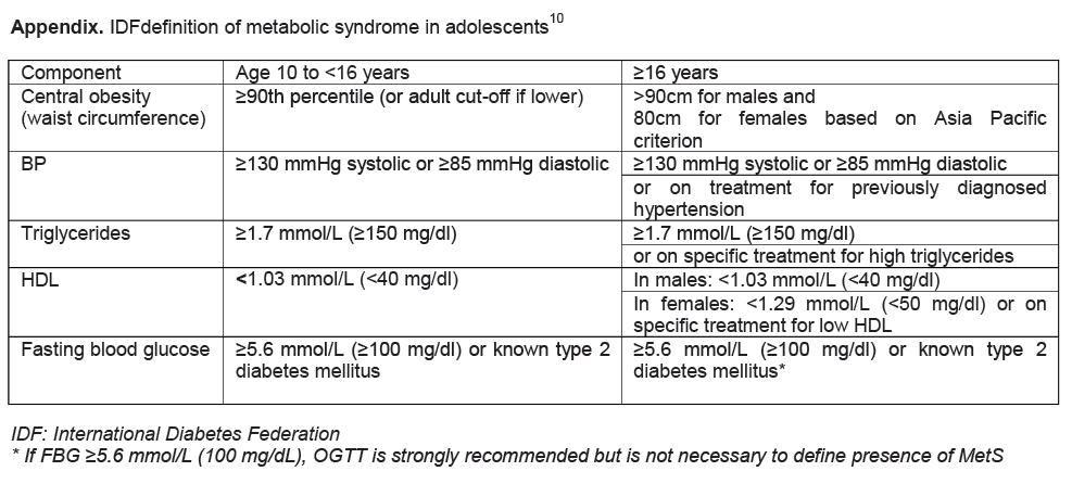 Appendix. IDFdefinition of metabolic syndrome in adolescents10
