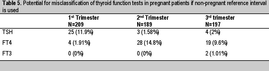 Click here to download Table 5Table 5. Potential for misclassification of thyroid function tests in pregnant patients if non-pregnant reference interval is used