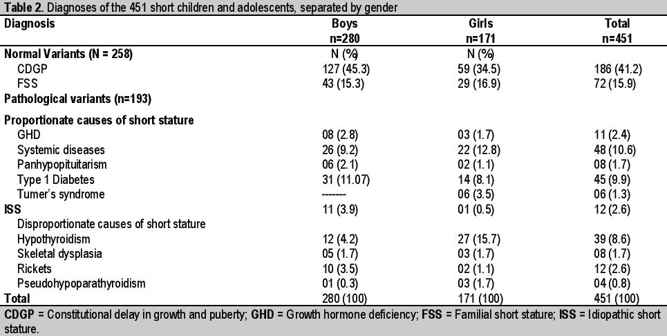 Click here to download Table 2Table 2. Diagnoses of the 451 short children and adolescents, separated by gender