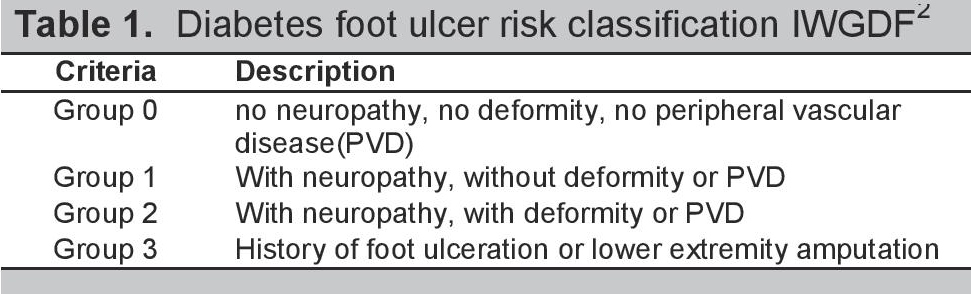 Patients will then be classified into four categories based on the foot ulcer risks2 in Table 1.