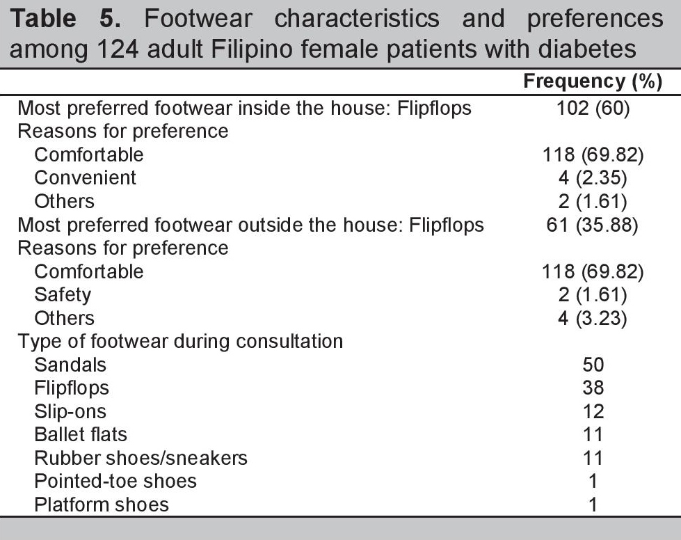 Table 5. Footwear characteristics and preferences among 124 adult Filipino female patients with diabetes