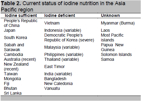Table 2. Current status of iodine nutrition in the Asia Pacific region