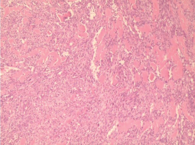 Click here to download Figure 9Figure 9.Cellular spindle cell tumour with deposition of basement membrane like eosinophilic material (20x).