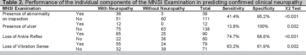 Click here to download Table 2Table 2. Performance of the individual components of the MNSI Examination in predicting confirmed clinical neuropathy