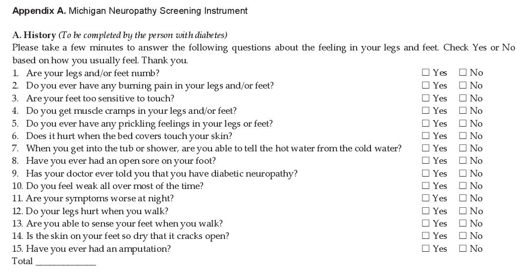 Click here to download Appendix AAppendix A. Michigan Neuropathy Screening Instrument