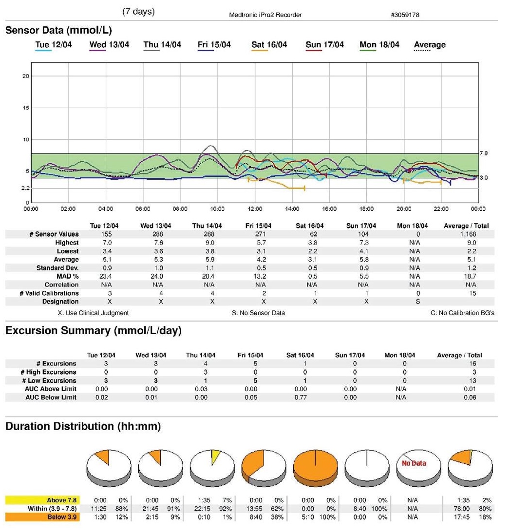 Click here to download Figure 1Figure 1.Results of seven days on continuous glucose monitoring system.