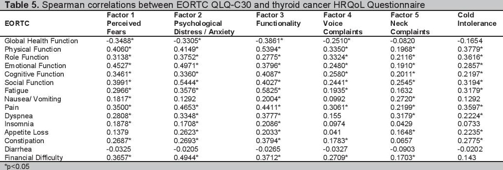 Click here to download Table 5Table 5. Spearman correlations between EORTC QLQ-C30 and thyroid cancer HRQoL Questionnaire