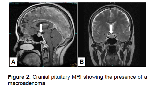 Figure 2. Cranial pituitary MRI showing the presence of a macroadenoma