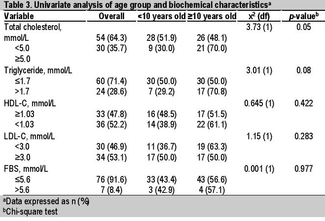 Table 3. Univariate analysis of age group and biochemical characteristics