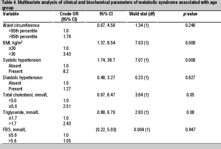 Table 4. Multivariate analysis of clinical and biochemical parameters of metabolic syndrome associated with age group