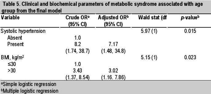 Table 5. Clinical and biochemical parameters of metabolic syndrome associated wuth age group from the final model