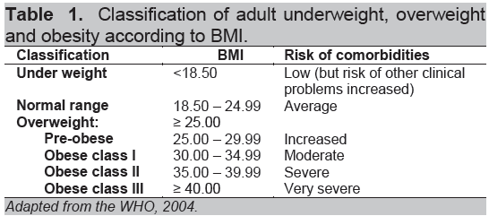 Table 1. Classification of adult underweight, overweight and obesity according to BMI.