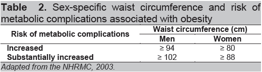 Table 2. Sex-specific waist circumference and risk of metabolic complications associated with obesity