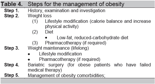 Table 4. Steps for the management of obesity