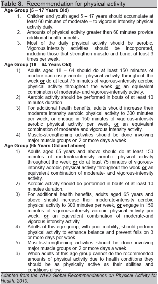 Table 8. Recommendation for physical activity