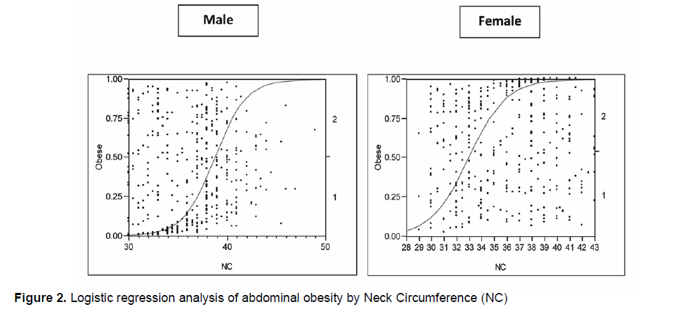 Figure 2. Logistic regression analysis of abdominal obesity by Neck Circumference (NC)