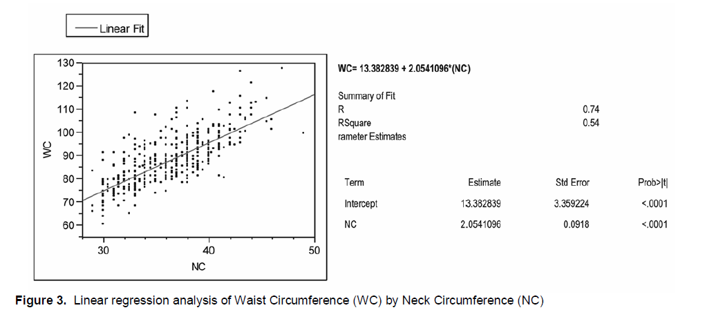 Figure 3. Linear regression analysis of Waist Circumference (WC) by Neck Circumference (NC)